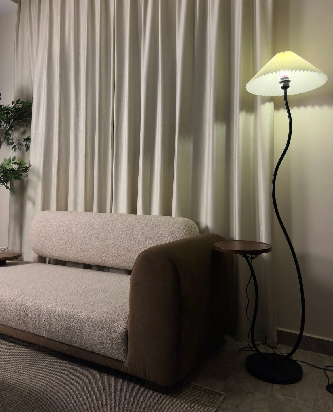 مصباح أرضي كريمي من القماش المنحني مع طاولة 3